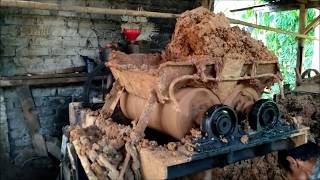 Proses pengolahan / penggilingan tanah liat untuk pembuatan gerabah, keramik, tembikar : pot, vase, dll.