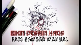 - Proses kreatif membuat gambar desain kaos manual ilustrasi sketsa